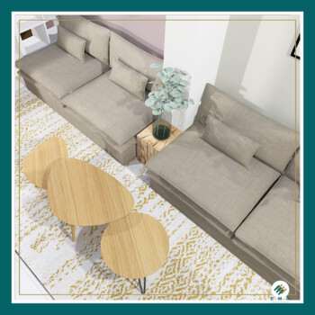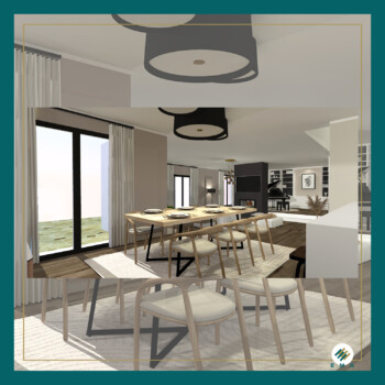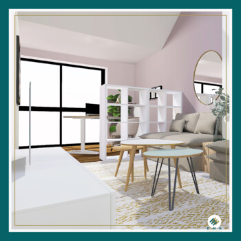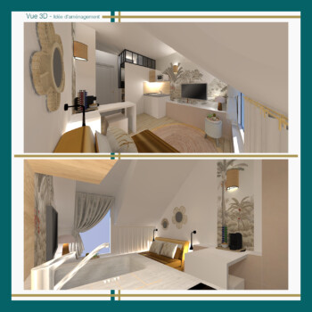Un guide pratique d’aménagement avec plan 2D, projection 3D réaliste pour chaque pièce avec fournitures et meubles listés.